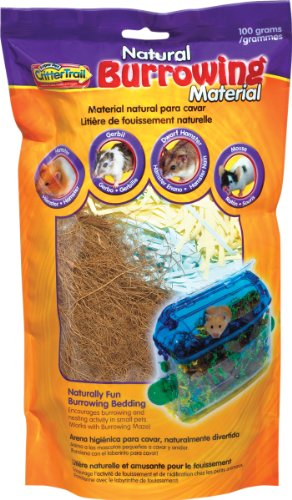 Naturally fun burrowing bedding encourages burrowing and nesting activity for small animals. Contains all natural coconut fibers with crinkle paper. Ideal for use with our critter trail burrowing maze. Replace bedding weekly. 100-gram package.